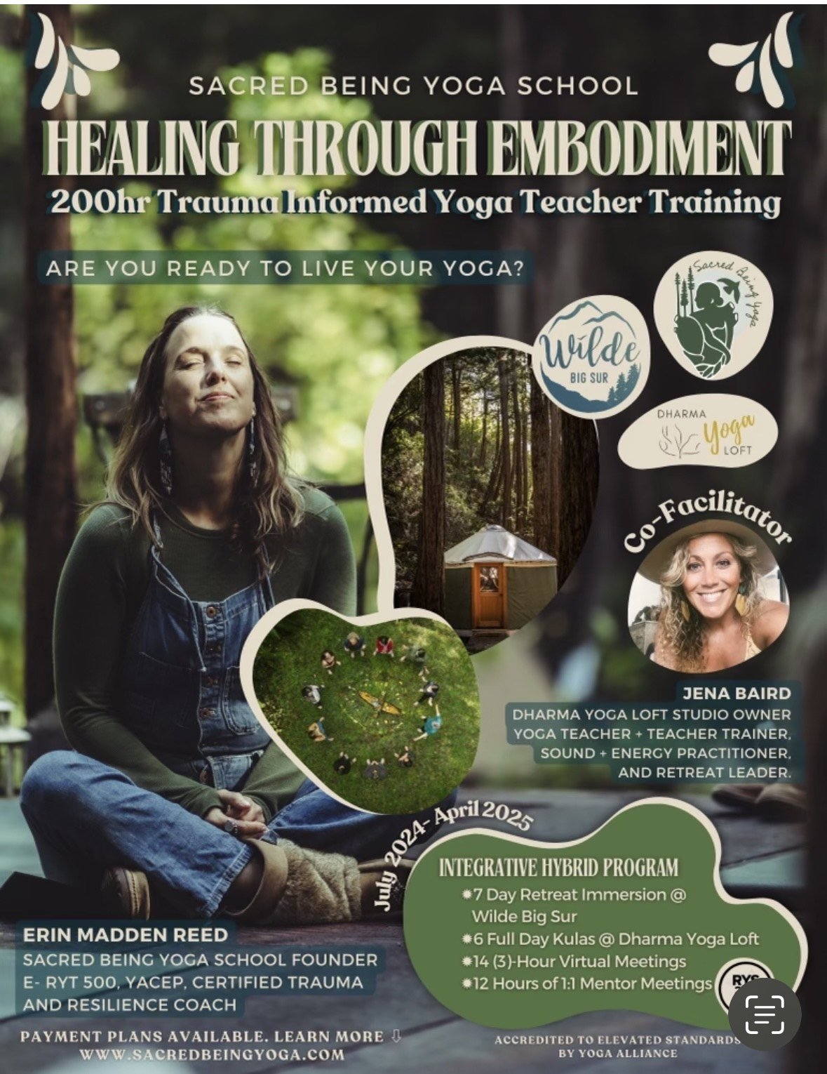 This program is offered once a year and is co-facilitated by Jen Baird of Dharma Yoga Loft and Erin Madden Reid of Sacred Being Yoga.